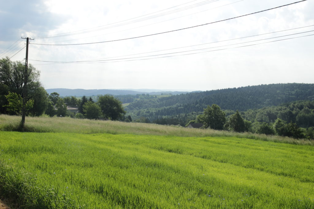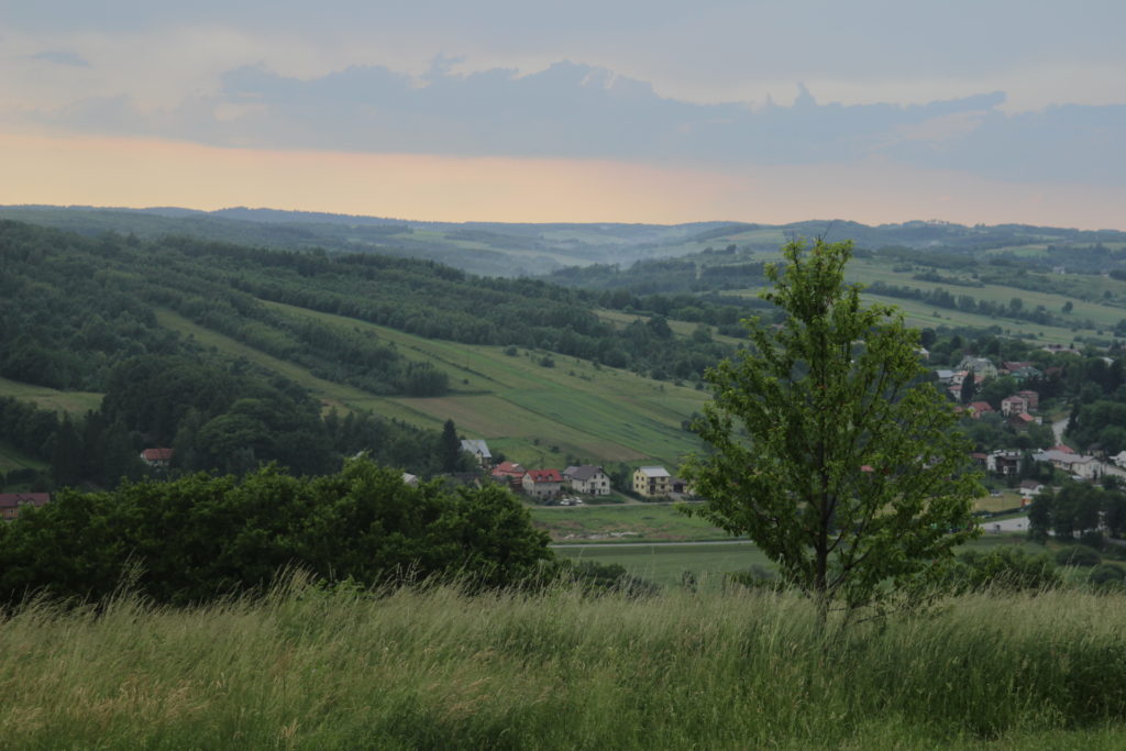Dla mnie istnieje tylko trzecia opcja. Jak już tu wlazłem i wiem że idąc na azymut w końcu trafię tam gdzie potrzebuje, to trzeba iść dalej i koniec. Nareszcie! Wyszedłem z tego zielonego piekła i trafiłem na prostą, polną drogę, prowadzącą prosto do miejscowości. Kiedy dotarłem do Łubna, znalazłem sklep i uzupełniłem zapasy. Przede mną ostatnia górka i będę w Dynowie. Obiad już blisko! 🙂