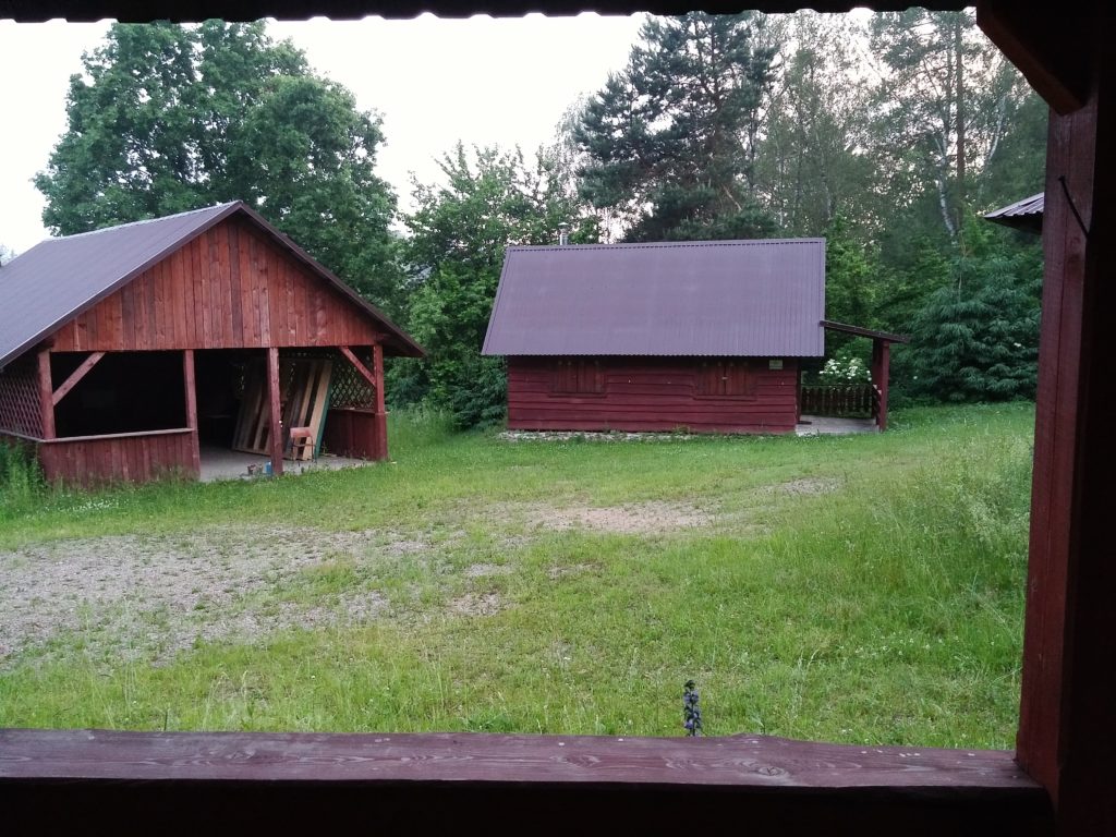 Miejsce mega wypasione! 2 budynki, 2 wiaty, w tym jedna na ognicho, podłoga do tańczenia pod dachem… normalnie jak ośrodek wypoczynkowy. Porozglądałem się po terenie, na którym stole by tu dziś spać. Zobaczyłem, że jeden budynek przy którym jest podłoga, ma bardzo duży i „odstający” dach. Okazało się że dach to olbrzymia wiata, pod którą jest drewniany kontener. Idealne miejsce do spania jakie mogłem znaleźć! Sucho, dach nad głową, bezpiecznie i cicho…. szybka mała kolacja i w kimę.
