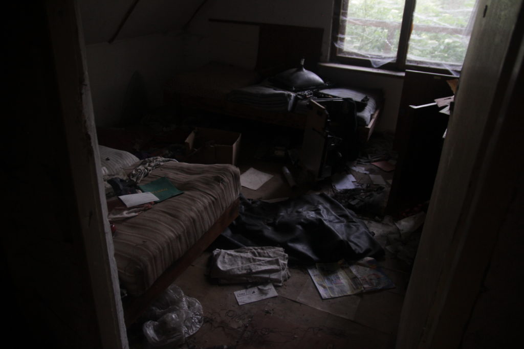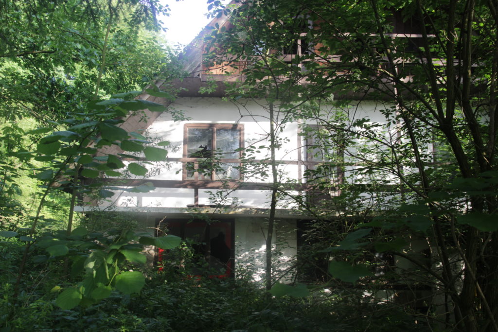 Idę główną drogą i nagle po prawej stronie z zarośli i drzew wyłania się coś ciekawego. Opuszczony budynek z otwartymi drzwiami, które zapraszają wędrowców do środka. Porozglądałem się tylko czy nikt mnie nie widzi i wchodzę do niego. Na dole znajduje się duże pomieszczenie z przewróconą lodówką na napoje. Trochę głębiej kuchnia z zamrażarkami. Chyba musiała tu być kiedyś jakaś restauracja. Wchodzę po skrzypiących schodach do góry. Budynek ma jeszcze 2 piętra. Na tych wyższych jest dużo małych pokoi, pewnie dla gości. W każdym jest pełno mebli i innych rzeczy zostawionych na podłodze. Rozglądam się za pustymi butelkami po jakimś alkoholu. To mogło by oznaczać że ktoś tu mieszka, ale nie znajduję nic „świeżego”. W pokojach są stare łóżka ze zniszczonymi materacami. Wszędzie jest brudno i nie wiem jakie zwierzęta tu mieszkają, ale postanowiłem tu przenocować. Położyłem na podłodze kilka małych materacy i rozścieliłem na nich tarp, żeby bezpośrednio nie kłaść na nich śpiwora. W środku było ciemniej niż na zewnątrz, więc zjadłem kolację, ogarnąłem stopy i poszedłem spać dużo szybciej niż w poprzednich dniach.
